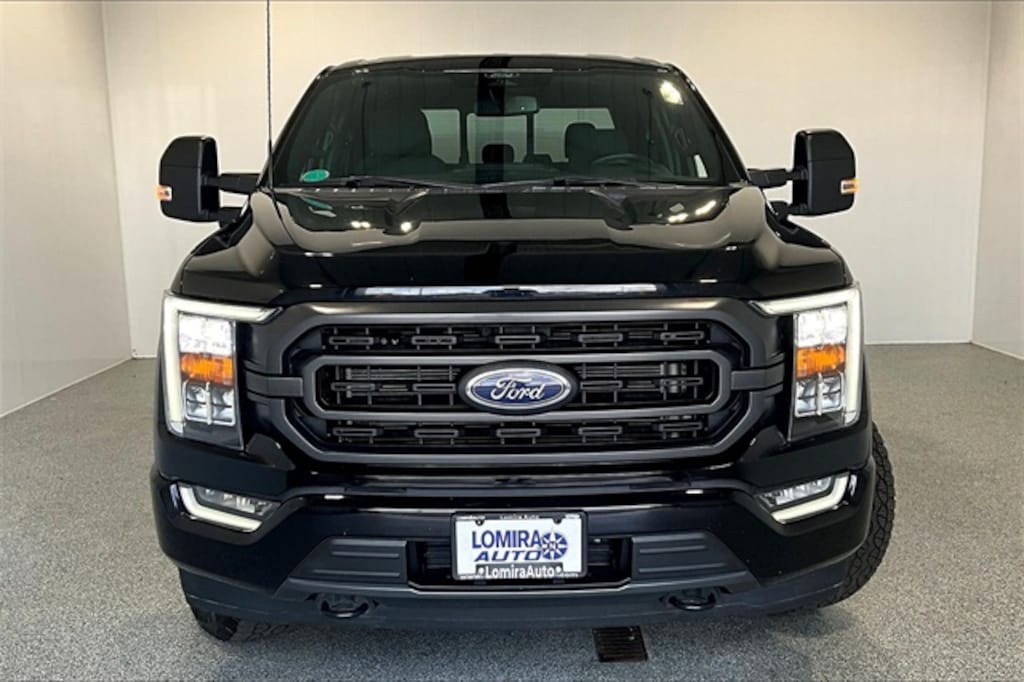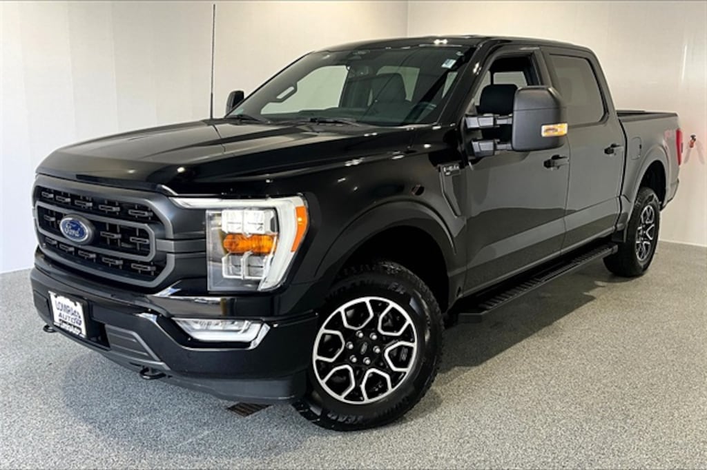 Agate Black Metallic 2022 Ford F-150 XLT 4WD 10-Speed Automatic 3.5L V6 EcoBoost F-150 XLT, 4D SuperCrew, 3.5L V6 EcoBoost, 10-Speed Automatic, 4WD, 10-Way Power Driver & Passenger Seats, 2-Bar Style Grille w/Chrome 2 Minor Bars, 4x4 FX4 Off-Road Bodyside Decal, 8" Productivity Screen in Instrument Cluster, Accent-Color Step Bars, Auto-Dimming Rear-View Mirror, Black 2-Bar Style Grille w/Black Surround/Accents, Body-Color Door & Tailgate Handles, Body-Color Front & Rear Bumpers, Box Side Decals, Bright Polished Step Bars, Chrome Door & Tailgate Handles w/Body-Color Bezel, Chrome Single-Tip Exhaust, Class IV Trailer Hitch Receiver, Dual Zone Electronic Automatic Temperature Control, Equipment Group 302A High, Extended Range 36 Gallon Fuel Tank, FX4 Off-Road Package, Heated Front Seats, Hill Descent Control, Integrated Trailer Brake Controller, Intelligent Access w/Push Button Start, Leather-Wrapped Steering Wheel, LED Reflector Headlamps, LED Sideview Mirror Spotlights, Max Trailer Tow Package, Monotube Rear Shocks, Off-Road Tuned Front Shock Absorbers, Onboard 400W Outlet, Power Glass Heated Sideview Mirrors, Pro Trailer Backup Assist, Radio: AM/FM SiriusXM w/360L, Rear Under-Seat Storage, Remote Start System w/Remote Tailgate Release, Rock Crawl Mode, SecuriCode Drivers Side Keyless-Entry Keypad, SYNC 4 w/Enhanced Voice Recognition, Tray Style Floor Liner (47W), Unique Sport Cloth 40/Console/40 Front-Seats, Wheels: 18" 6-Spoke Machined Aluminum, Wheels: 18" Chrome-Like PVD, XLT Chrome Appearance Package, XLT Sport Appearance Package, Zone Lighting.