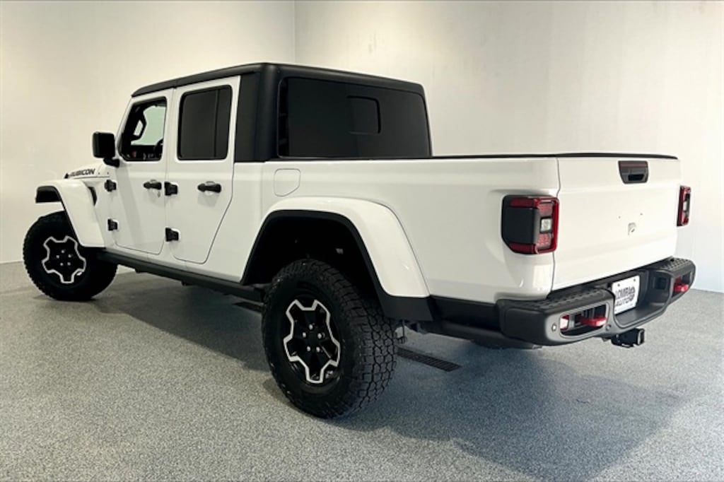 Bright White Clearcoat 2020 Jeep Gladiator Rubicon 4WD 8-Speed Automatic 3.6L V6 24V VVT *CRUISE CONTROL*, *POWER LOCKS*, *POWER WINDOWS*, Gladiator Rubicon, 4D Crew Cab, 3.6L V6 24V VVT, 8-Speed Automatic, 4WD, Black Leather, 1-Year SiriusXM Guardian Trial, 240 Amp Alternator, 5-Year SiriusXM Traffic Service, 5-Year SiriusXM Travel Link Service, 700 Amp Maintenance Free Battery, 8.4" Radio & Premium Audio Group, Advanced Brake Assist, Advanced Safety Group, Alpine Premium Audio System, Auto-Dimming Rear-View Mirror, Auxiliary Switch Group, Auxiliary Switches, Blind Spot & Cross Path Detection, Cargo Group w/Trail Rail System, Class IV Hitch Receiver, Cold Weather Group, Daytime Running Lamps LED Accents, Emergency/Assistance Call, Exterior 115V AC Outlet, For Details, Visit DriveUconnect.com, Front LED Fog Lamps, Full Speed Forward Collision Warning Plus, HD Radio, Heated Front Seats, Heated Steering Wheel, Heavy-Duty Engine Cooling, LED Lighting Group, LED Park Turn Lamps, LED Reflector Headlamps, LED Taillamps, Lockable Rear Underseat Storage, Navigation System, ParkSense Rear Park Assist System, Quick Order Package 24R, Radio: Uconnect 4C Nav w/8.4" Display, Safety Group, SiriusXM Traffic Plus, SiriusXM Travel Link, Trailer Hitch Zoom, Trailer Tow Package.