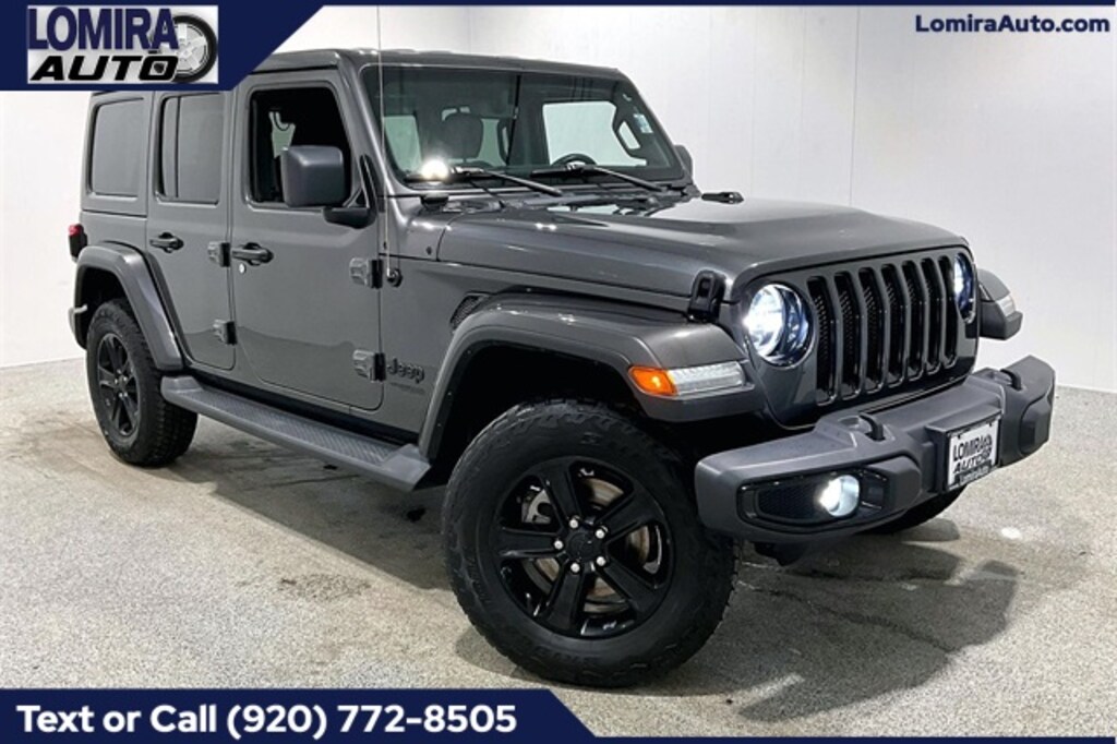 Granite Crystal Metallic Clearcoat 2022 Jeep Wrangler Unlimited Sahara Altitude 4WD 8-Speed Automatic 2.0L I4 DOHC STABILITY CONTROL, APPEARANCE PACKAGE, BLUETOOTH, HANDS-FREE, *CRUISE CONTROL*, *POWER LOCKS*, *POWER WINDOWS*, REMOTE START, HEATED SEATS, KEYLESS ENTRY, BACKUP CAMERA, PREMIUM AUDIO, PREMIUM AUDIO CONNECTION, PORTABLE AUDIO CONNECTION, TRAILER HITCH, Wrangler Unlimited Sahara Altitude, 4WD, 110 MPH Vehicle Max Speed Calibration, 240 Amp Alternator, 7 & 4 Pin Wiring Harness, 700 Amp Maintenance Free Battery, Altitude Package, Auxiliary Switches, Black Interior Accents, Black Trail Rated Badge, Body Color 3-Piece Hard Top, Body Color Grille w/Gloss Black Rings, Bridgestone Brand Tires, Class II Receiver Hitch, Cold Weather Group, Daytime Running Lamps LED Accents, Freedom Panel Storage Bag, Front LED Fog Lamps, Heated Front Seats, Heated Steering Wheel, Leather Trimmed Bucket Seats w/2_L, Leather Wrapped Park Brake Handle, Leather Wrapped Shift Knob, LED Lighting Group, LED Premium Reflector Headlamps, LED Taillamps, Matte Black Jeep Badge, Mold In Color Bumper w/Gloss Black, MOPAR Hardtop Headliner, No Soft Top, Quick Order Package 22L Altitude, Rear Window Defroster, Rear Window Wiper/Washer, Trailer Tow & HD Electrical Group, Wheels: 18" x 7.5" Gloss Black Aluminum, Wizard Black Instrument Panel Bezels.