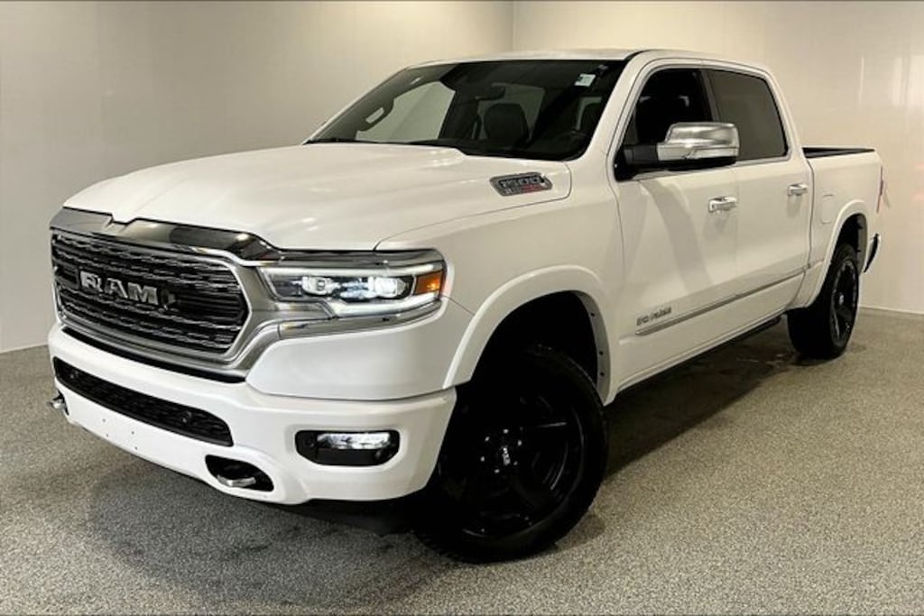 Ivory White Tri-Coat Pearlcoat 2022 Ram 1500 Limited 4WD 8-Speed Automatic EcoDiesel 3.0L V6 STABILITY CONTROL, APPEARANCE PACKAGE, MOONROOF, BLUETOOTH, HANDS-FREE, *CRUISE CONTROL*, *POWER LOCKS*, *POWER WINDOWS*, *MULTI-ZONE CLIMATE CONTROL*, SUNROOF / MOONROOF, REMOTE START, HEATED SEATS, KEYLESS ENTRY, BACKUP CAMERA, PREMIUM AUDIO, PREMIUM AUDIO CONNECTION, PORTABLE AUDIO CONNECTION, TRAILER HITCH, LEATHER SEATS, CHROME WHEELS, NAVIGATION, 1500 Limited, EcoDiesel 3.0L V6, 4WD, Black w/Leather Trimmed Bucket Seats, Body Color Bumper Group, Body Color Front Bumper, Body Color Rear Bumper w/Step Pads, Navigation System, Quick Order Package 28M Limited, Trailer Brake Control, Trailer Light Check, Trailer Reverse Steering Control, Trailer Tire Pressure Monitoring System, Trailer Tow Group.