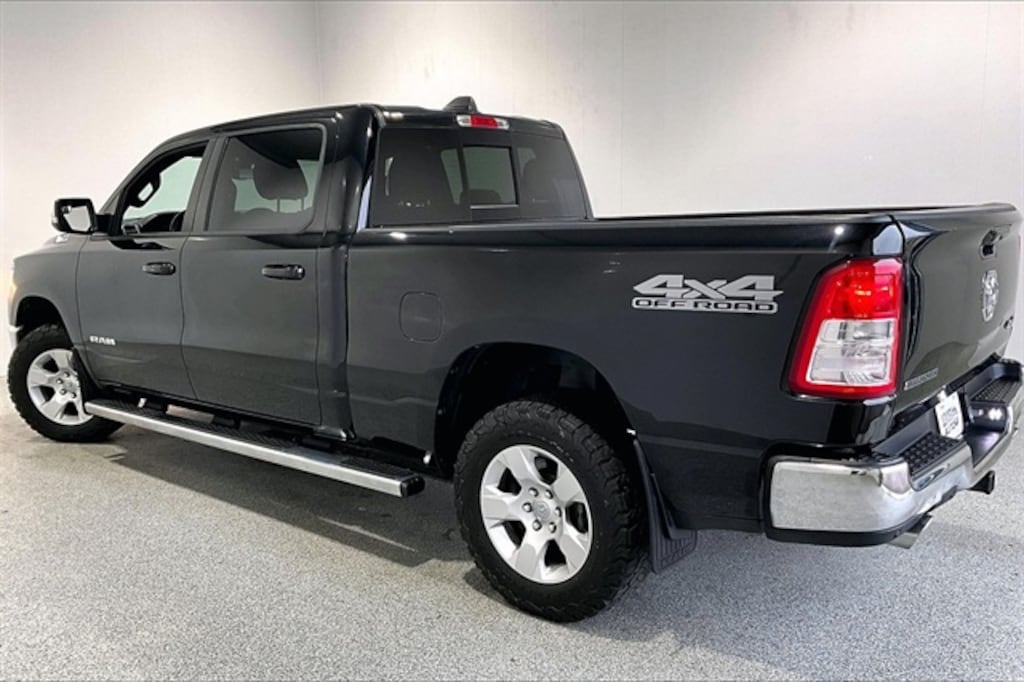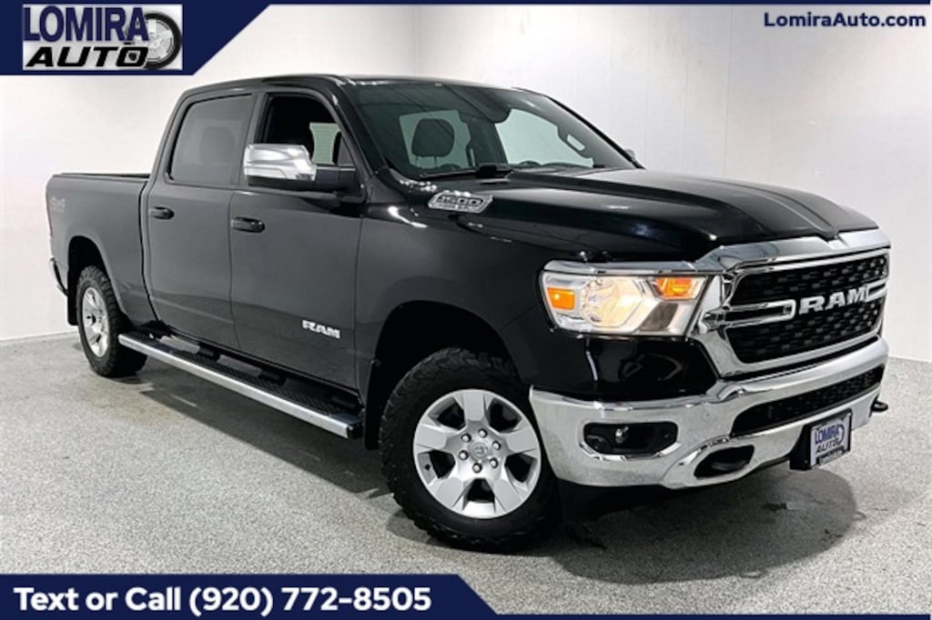 Diamond Black Crystal Pearlcoat 2022 Ram 1500 Big Horn/Lone Star 4WD 8-Speed Automatic HEMI 5.7L V8 Multi Displacement VVT *CRUISE CONTROL*, *POWER LOCKS*, *POWER WINDOWS*, 1500 Big Horn/Lone Star, 4D Crew Cab, HEMI 5.7L V8 Multi Displacement VVT, 8-Speed Automatic, 4WD, 115V Auxiliary Power Outlet, 115V Auxiliary Rear Power Outlet, 2nd Row In Floor Storage Bins, 400W Inverter, 4G LTE Wi-Fi Hot Spot, 8.4" Touchscreen Display, Air Conditioning ATC w/Dual Zone Control, All Plant-Installed Decals, Apple CarPlay, Auto-Dimming Exterior Driver Mirror, Auto-Dimming Rear-View Mirror, Big Horn Badge, Big Horn Level 2 Equipment Group, Black Exterior Mirrors, Black Premium Power Mirrors, Bluetooth Handsfree Phone & Audio, Class IV Receiver Hitch, Cluster 7.0" TFT Color Display, Connectivity - US/Canada, Convex Wide-Angle Mirror Insert, E-Locker Rear Axle, Exterior Mirrors Courtesy Lamps, Exterior Mirrors w/Heating Element, Exterior Mirrors w/Supplemental Signals, For Details, Visit DriveUconnect.com, For More Info, Call 800-643-2112, Front Extra HD Shock Absorbers, Global Telematics Box Module (TBM), Glove Box Lamp, Google Android Auto, GPS Antenna Input, Heated Front Seats, Heated Steering Wheel, Hill Descent Control, Integrated Center Stack Radio, Media Hub w/2 Charge Only USBs, Off Road Decals, Off Road Group, ParkSense Front/Rear Park Assist w/Stop, Power 2-Way Driver Lumbar Adjust, Power 8-Way Driver Seat, Power Adjustable Pedals, Power-Folding Mirrors, Quick Order Package 25Z Big Horn, Radio: Uconnect 5 W w/8.4" Display, Raised Ride Height, Rear Dome w/On/Off Switch Lamp, Rear Extra HD Shock Absorbers, Rear Power Sliding Window, Rear Window Defroster, Remote Start System, Security Alarm, SiriusXM Radio Service, SiriusXM Satellite Radio, Sun Visors w/Illuminated Vanity Mirrors, Tow Hooks, Trailer Brake Control, Trailer Light Check, Trailer Reverse Steering Control, Trailer Tow Group (B) (DISC), Universal Garage Door Opener, USB Host Flip.