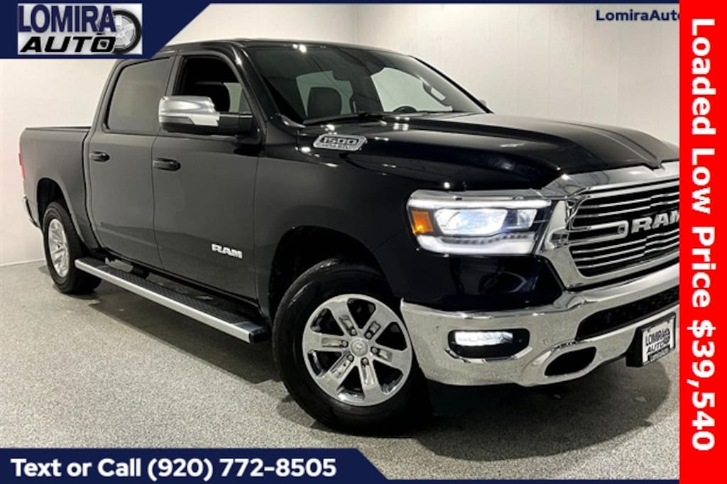 Diamond Black Crystal Pearlcoat 2023 Ram 1500 Laramie 4WD 8-Speed Automatic HEMI 5.7L V8 Multi Displacement VVT eTorque *CRUISE CONTROL*, *POWER LOCKS*, *POWER WINDOWS*, 1500 Laramie, 4D Crew Cab, HEMI 5.7L V8 Multi Displacement VVT eTorque, 4WD, 12" Touchscreen Display, 2nd Row In Floor Storage Bins, 4G LTE Wi-Fi Hot Spot, Apple CarPlay, Auto High Beam Headlamp Control, Bed Utility Group, Blind Spot & Cross Path Detection, Connected Travel & Traffic Services, Connectivity - US/Canada, Disassociated Touchscreen Display, Electric Shift-On-Demand Transfer Case, Foam Bottle Insert (Door Trim Panel), For Details, Visit DriveUconnect.com, For More Info, Call 800-643-2112, Front Door Accent Lighting, Front LED Fog Lamps, Global Telematics Box Module (TBM), Google Android Auto, GPS Antenna Input, GPS Navigation, HD Radio, Integrated Center Stack Radio, Integrated Voice Command w/Bluetooth, Laramie Level 1 Equipment Group, LED Reflector Headlamps, MOPAR 4 Adjustable Cargo Tie-Down Hooks, MOPAR Spray In Bedliner, Navigation System, ParkSense Front/Rear Park Assist w/Stop, Pick-Up Box Lighting, Quick Order Package 23H Laramie, Radio: Uconnect 5 Nav w/12.0" Display, Rain Sensitive Windshield Wipers, Rear Door Accent Lighting, Rear Power Sliding Window, Rear Window Defroster, Remote Tailgate Release, SiriusXM Radio Service, SiriusXM w/360L, USB Host Flip.